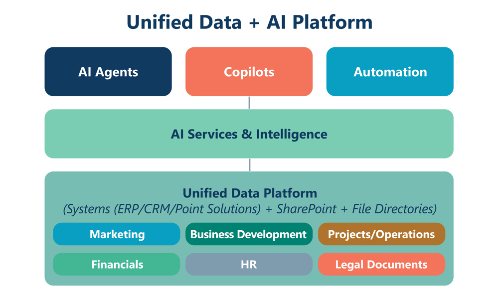 Each system plays its role. But without a unifying layer, firms end up with duplicate records, conflicting reports, and manual workarounds to answer basic questions. What’s worse, this fragmented setup makes it nearly impossible to use AI tools effectively. As the result, AEC firms are drowning in data but starving for insight.