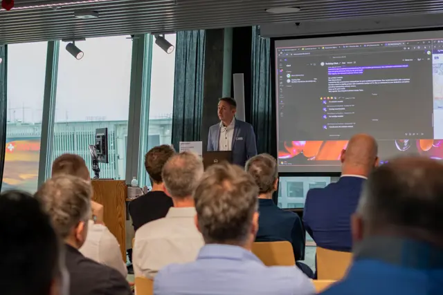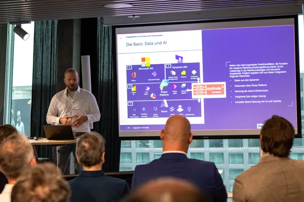 Christian Flachmeier von Microsoft brachte dem interessierten Publikum Microsofts KI-Vision und die erfolgreiche Umsetzung näher.  Sein Vortrag war ein gelungener Auftakt des Events und brachte auf den Punkt, wie Microsoft Copilot und andere innovativen Technologien die Art und Weise verändern, wie wir heute und in Zukunft arbeiten können.