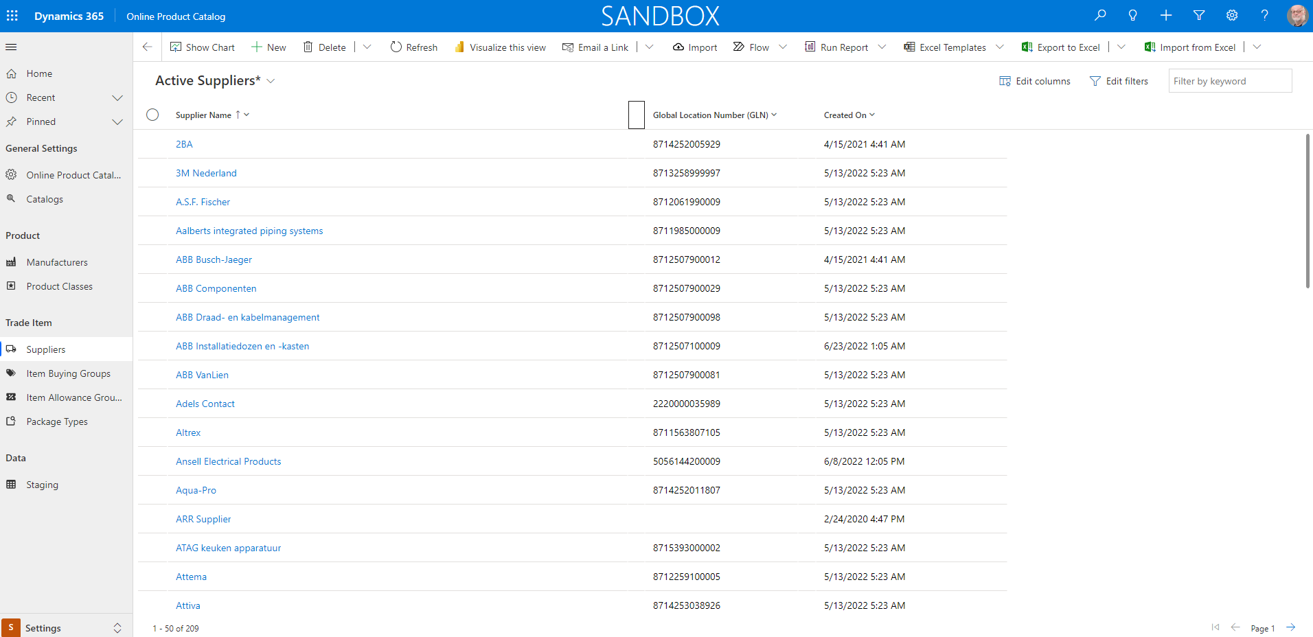 Direct access to lists of used suppliers including GLN number