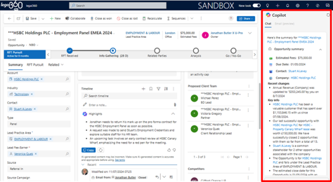 In Microsoft Dynamics 365 Sales, dat de basis vormt voor onze legal360 CRM-oplossing, voegt Microsoft voortdurend nieuwe Copilot-functionaliteiten toe en verfijnt bestaande. Dit verhoogt de productiviteit aanzienlijk: ik krijg sneller antwoorden op vragen, inclusief inzichten en samenvattingen over cliënten en kansen, én over interacties van collega’s met cliënten—waardoor ik altijd goed geïnformeerd ben.