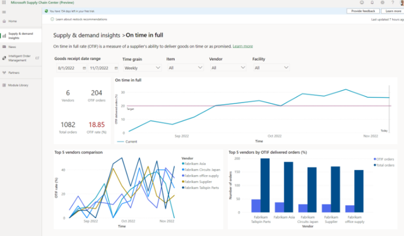 Supply & Demand Insights, onderdeel van het Supply Chain Center, biedt een actueel en volledig inzicht in je supply chain keten en de mogelijke verstoringen. Het bevat een aantal “uit-de-doos” KPI’s die het mogelijk maken door middel van AI en eigen analyses veranderingen te identificeren en gerichte aanbevelingen te krijgen.