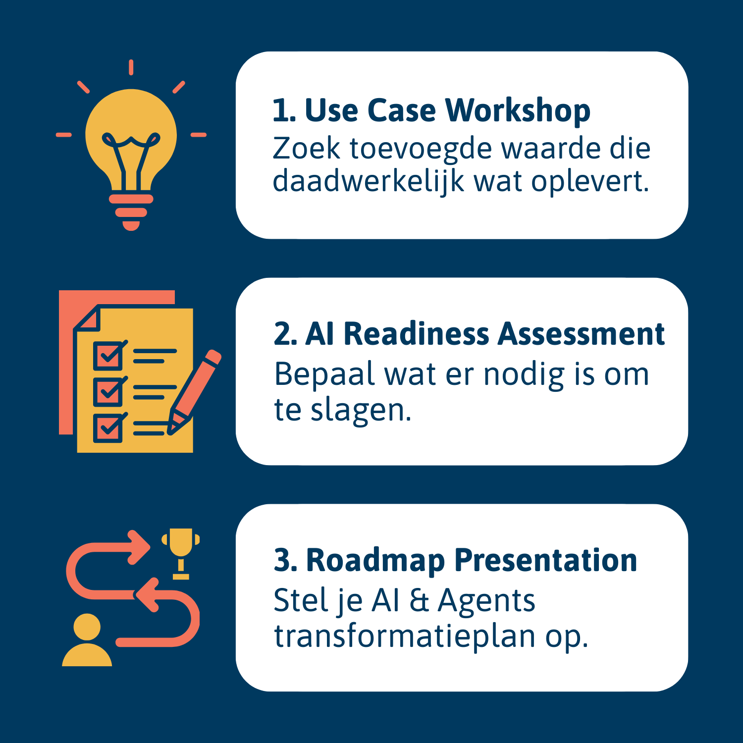 Klaar om vooruitgang te boeken, maar nog niet klaar voor het volledige AI Envisioning Lab? Boek dan nu jouw gratis AI ROI Discovery Hour om vandaag nog de eerste stap te zetten.