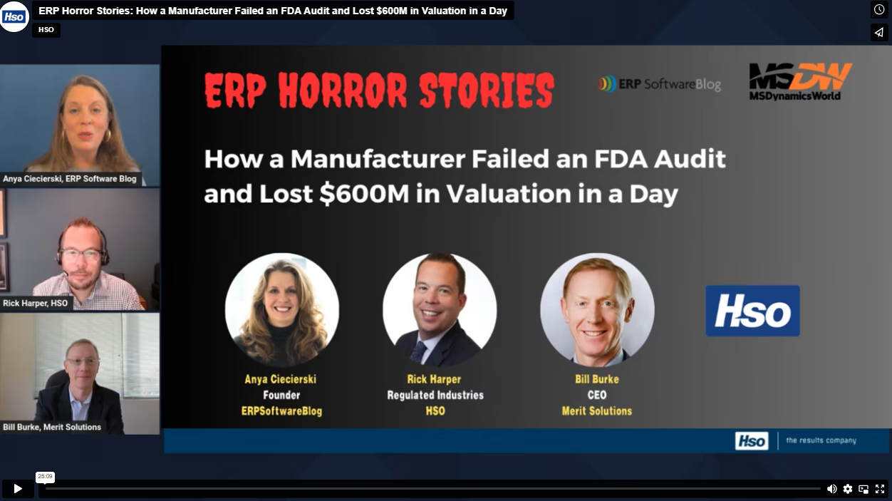 In the most recent "ERP Horror Story," Microsoft Partners HSO and Merit Solutions talk about a manufacturer's Dynamics 365 setup that wasn’t properly tailored to their specific industry. The company faced a flawed FDA audit, resulting in a staggering $600 million loss in valuation and a 40% decline in stock price overnight.