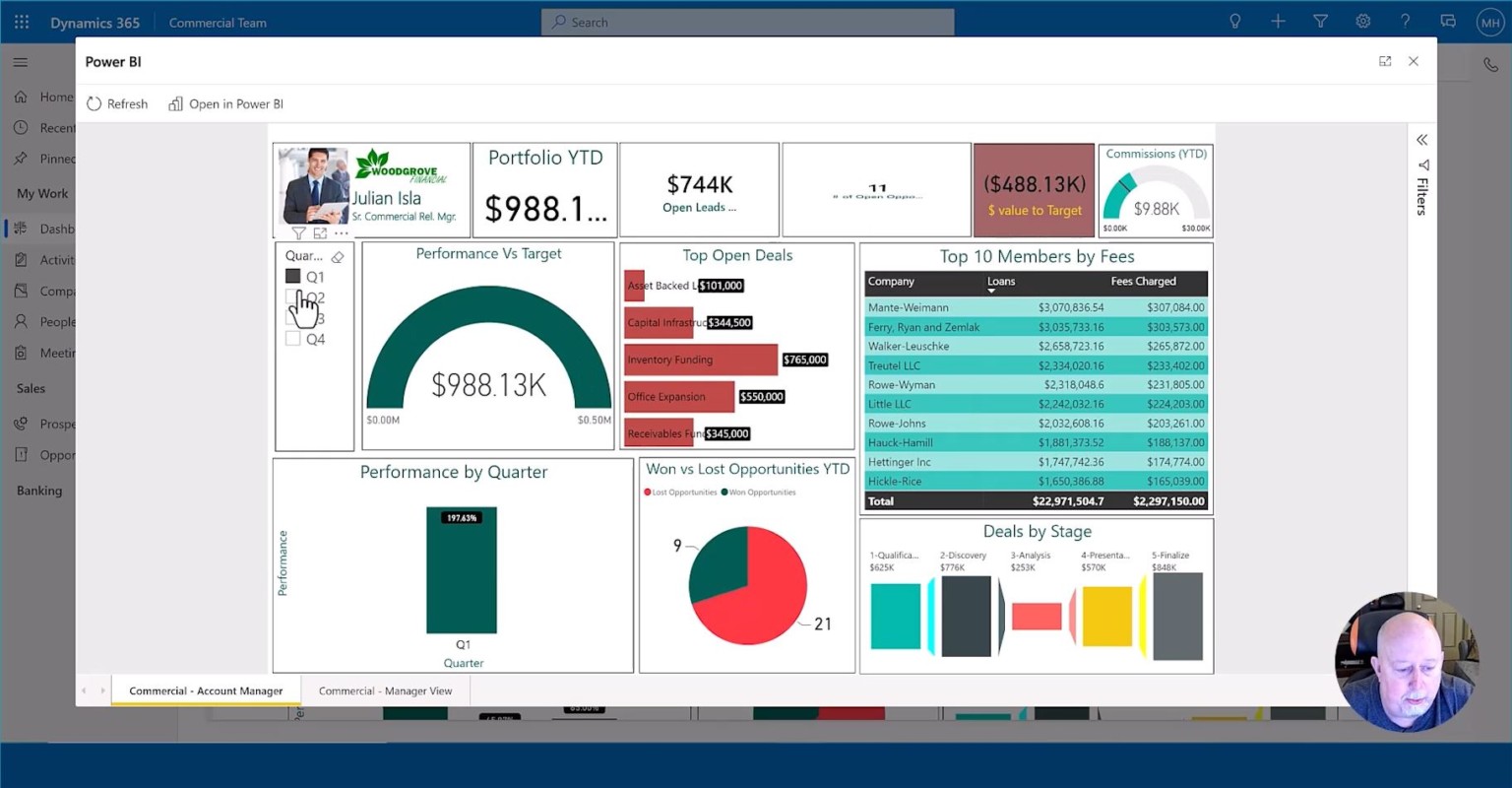 I can track and understand what my portfolio looks like year to date, tracking leads and the value of those leads, open opportunities, and the value of those open opportunities and where to target, not only from a total revenue perspective, but also a commission’s perspective.